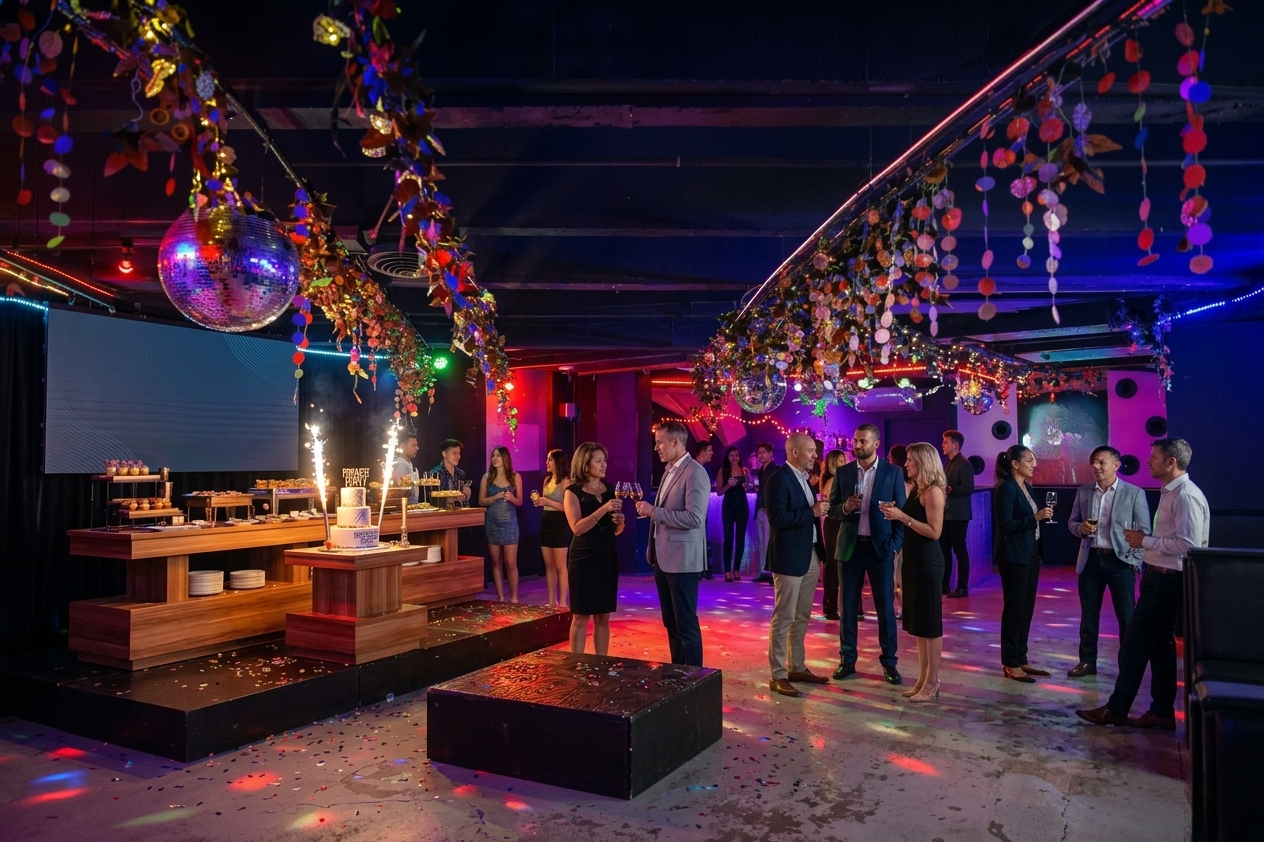 A unique industrial-style private party venue perfect for birthday celebrations, DJ events,
